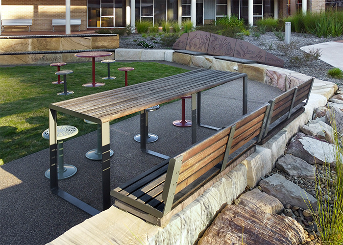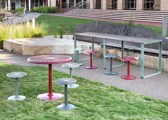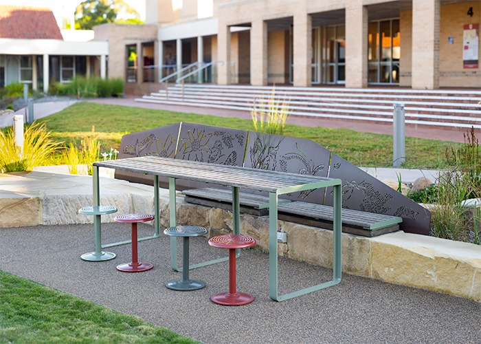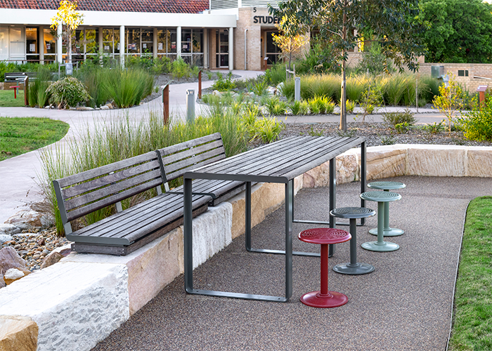 For larger groups, long Linea Tables provide space to work, study or share a meal outdoors, extending the learning environment into the landscape.
