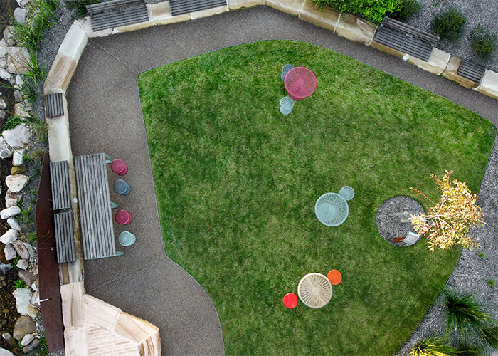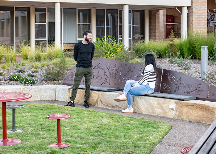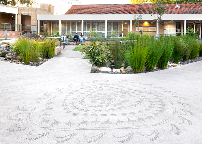 The landscape architects, with WSP Indigenous Specialist Services, worked closely with the Traditional Knowledges gifted by the D’harawal Traditional Descendants and Knowledge Holders Circle, and D’harawal artist and scholar Shannon Foster from bangawarra inc, and the endorsement of the Western Sydney University Indigenous Elders Advisory Committee to design this important cultural space.