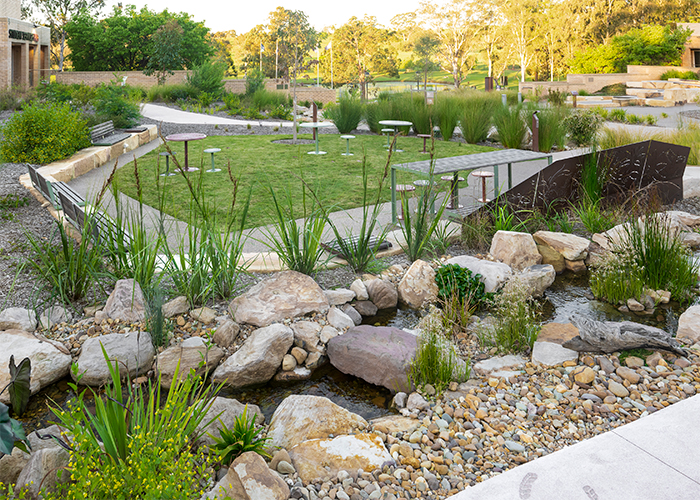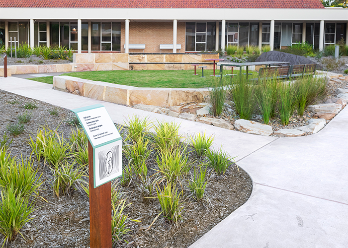 “The three hills, flowing water and native vegetation all draw from the land and stories of the area. It’s a robust, resilient garden that not only celebrates D’harawal culture, but also begins to re-naturalise the campus, shifting it from an institutional setting to one that feels more connected to Country.”