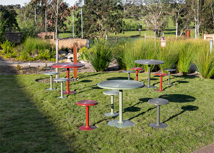 Movable Cafe settings encourage gatherings and can be repositioned for shade or comfort throughout the day. “The circular Cafe Tables felt right for the space – there are no straight lines in the design so their form fitted naturally,” he added.