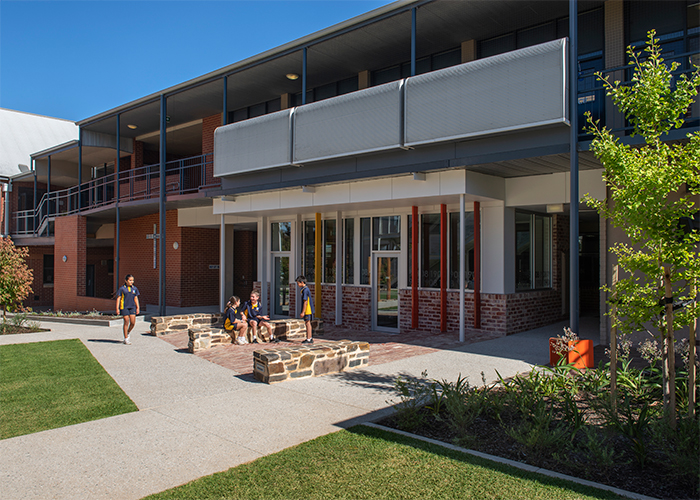 The campus of the 117 year old Rosary School had been covered with bitumen and was lacking in nature and outdoor play after years of piecemeal redevelopment. Wax Design worked with Grieve Gillett Architects to transform the Catholic School in inner suburban Adelaide from a hard-surfaced campus into a green, inviting landscape.