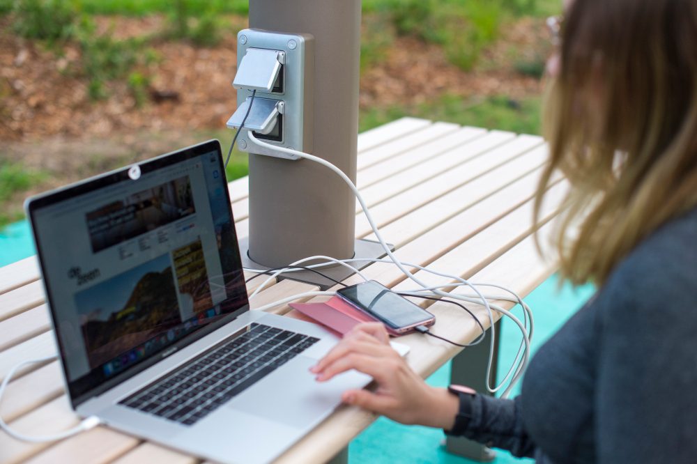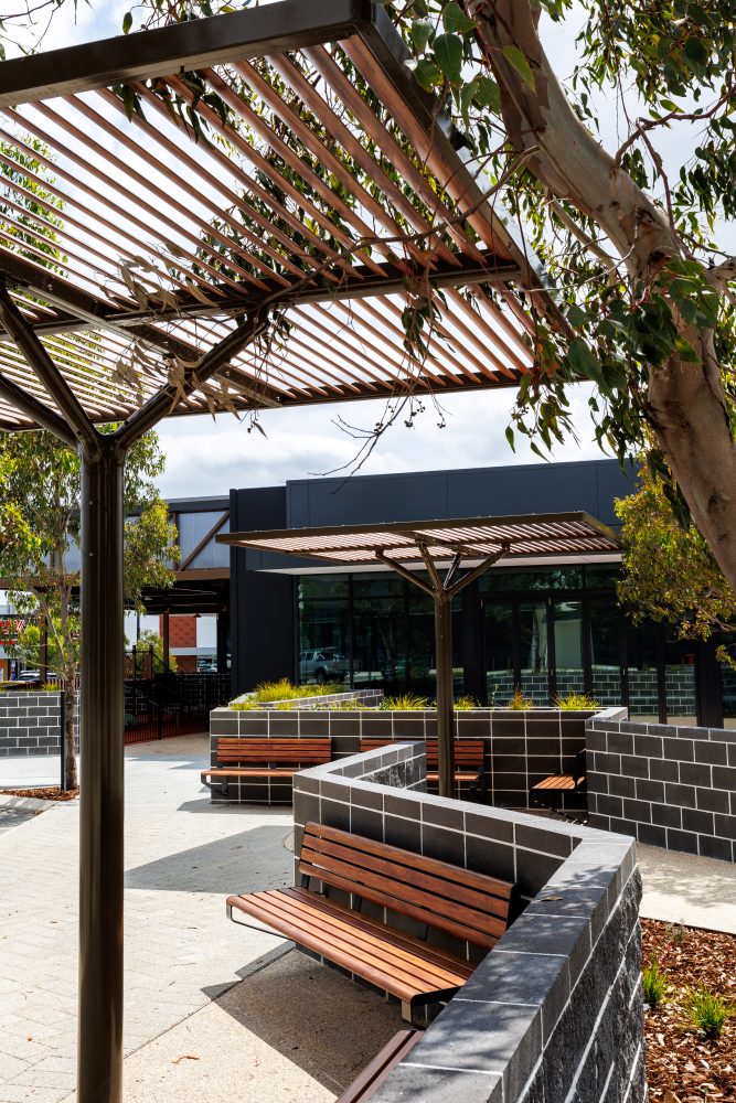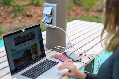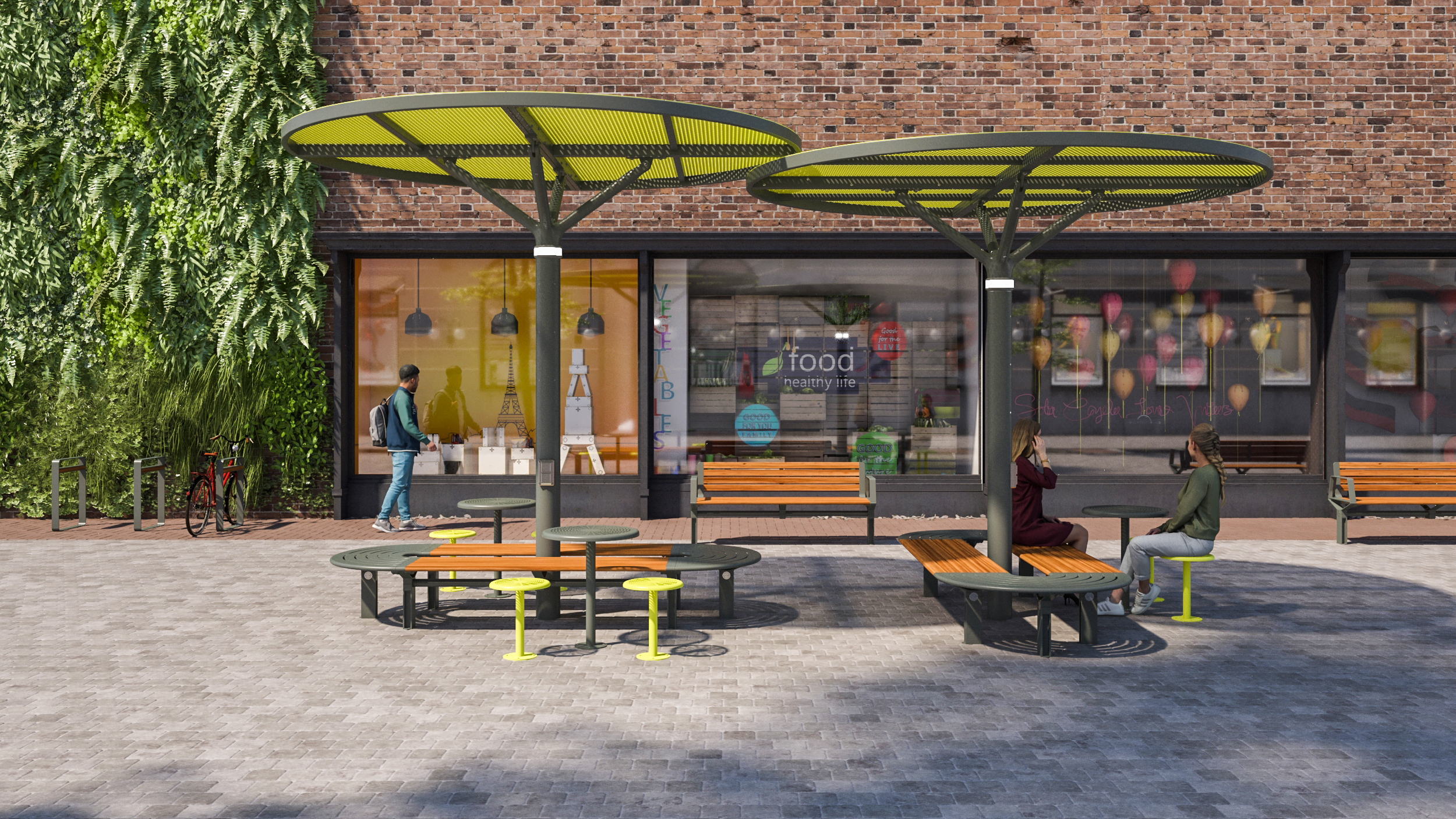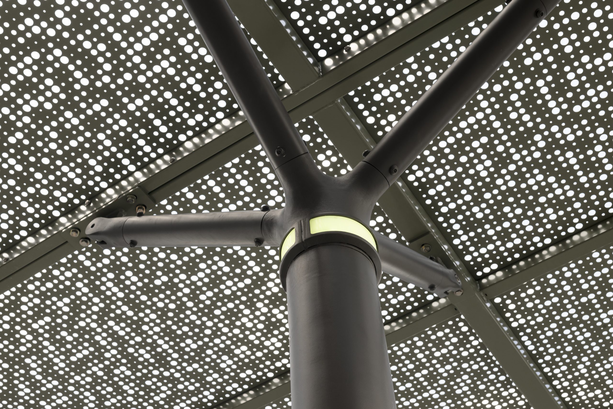 ChillOUT is our smart modular shade and shelter system, an attractive centrepiece for outdoor seating hubs. Designed to encourage people to spend time outdoors, ChillOUT is available with optional device charging points and night lighting. Choose from a round or square roof, and a variety of roof materials and finishes and our full range of colours.