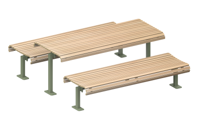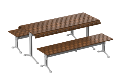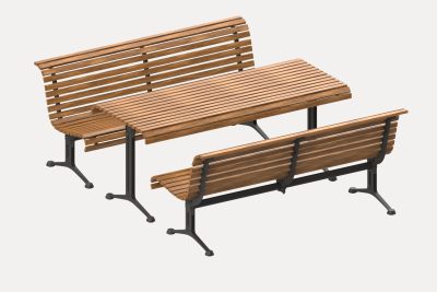 The Classic range features slender battens in a wave profile in eco-certified hardwood or aluminium, with a variety of arm and leg designs.