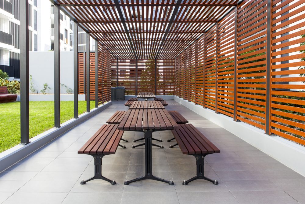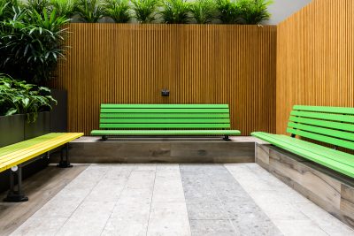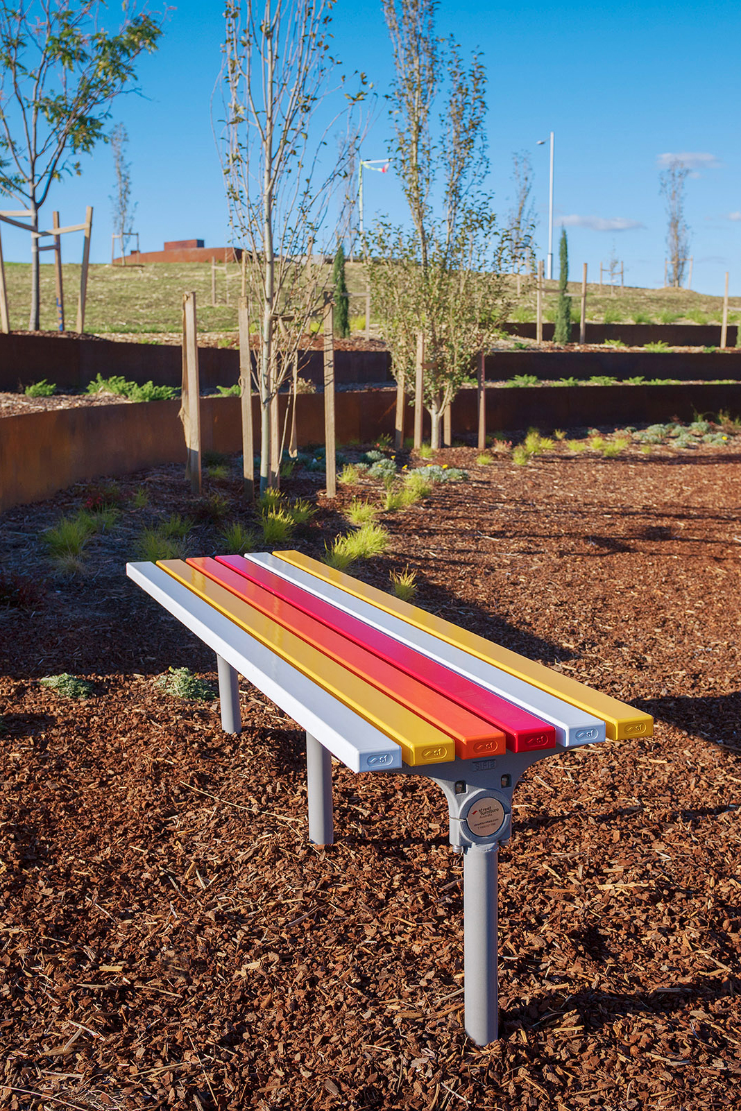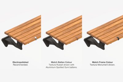 Benches are available as flat (Slim Bench) or contoured in our complete range of batten material and colour options. Other products in the Mall range include Curved Slim Bench, Sun Lounge, Platform and Table.