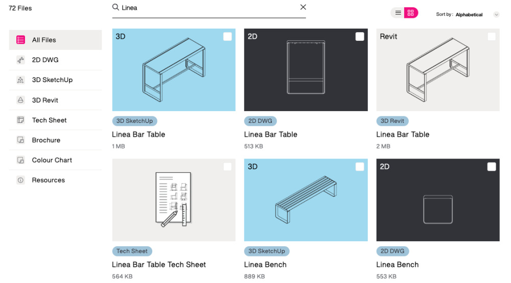 Toolbox provides quick access to everything you need to specify – 2D and 3D drawings, technical sheets, brochures, colour chart and supporting resources.